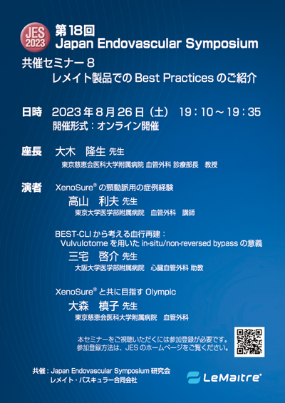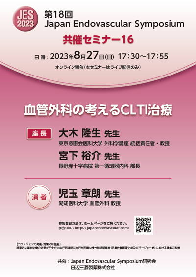 赤松 大二朗(東北大学病院 総合外科 上部消化管血管グループ) 坂野 比呂志(名古屋大学大学院医学系研究科 血管外科) 大木 隆生(東京慈恵会医科大学 外科学講座 血管外科) |