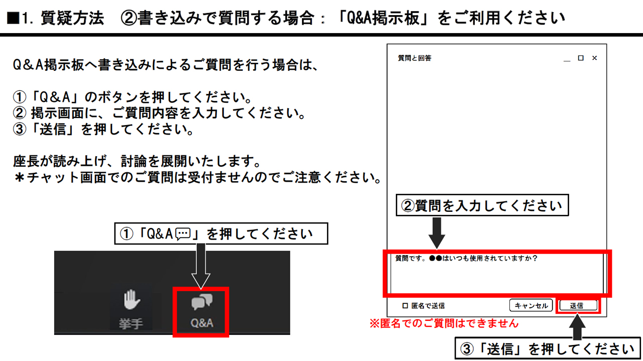 参加者(視聴者)から2通りの方法でご質問が可能です。